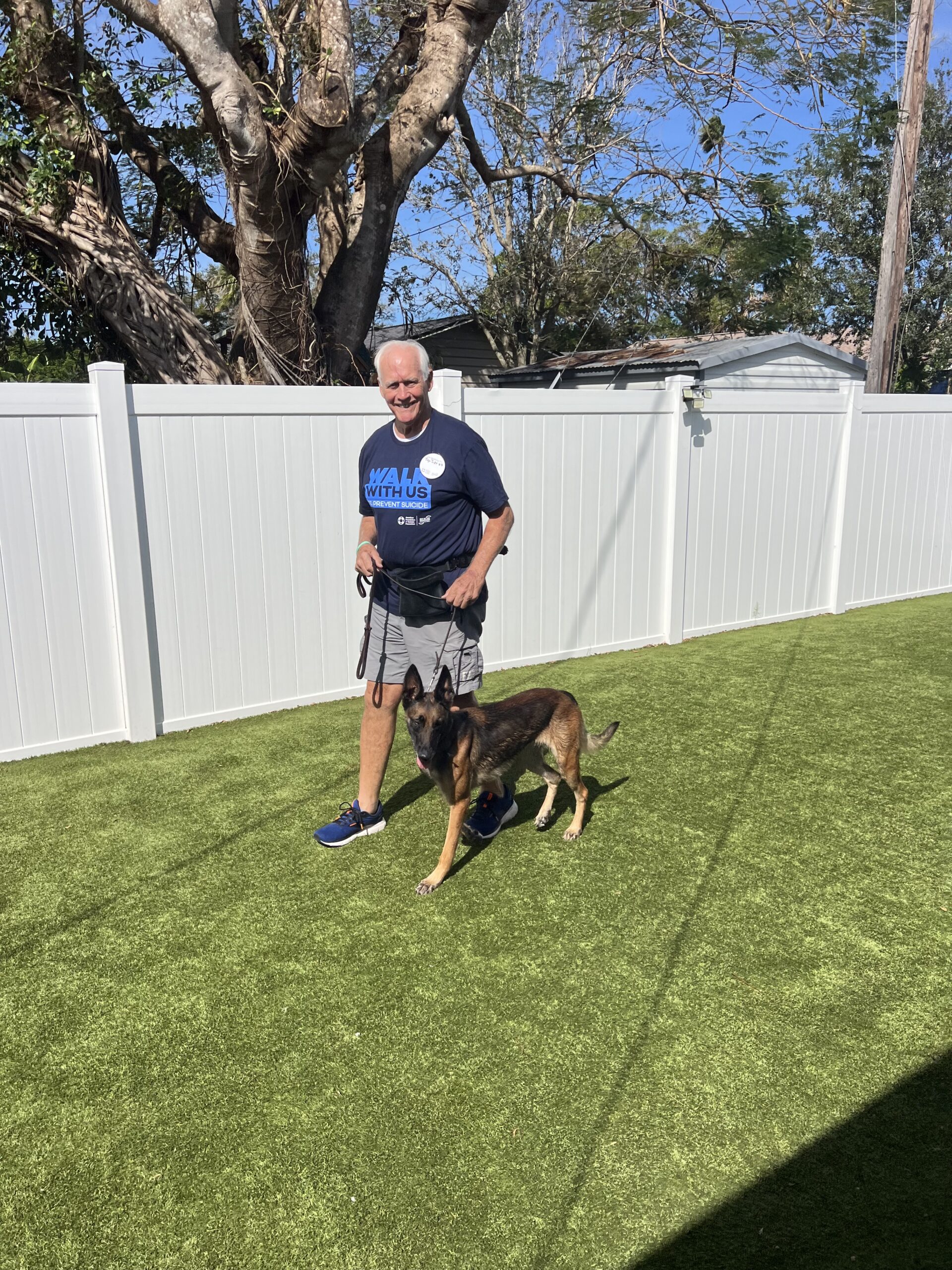 Alt Text: “Veteran Michael training with service dog Bella in Sarasota.”
